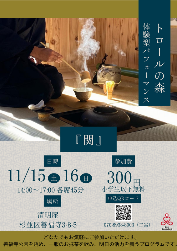 I hope you will spend time drinking tea while watching Zempukuji Park, facing yourself, and finding a way out for tomorrow.